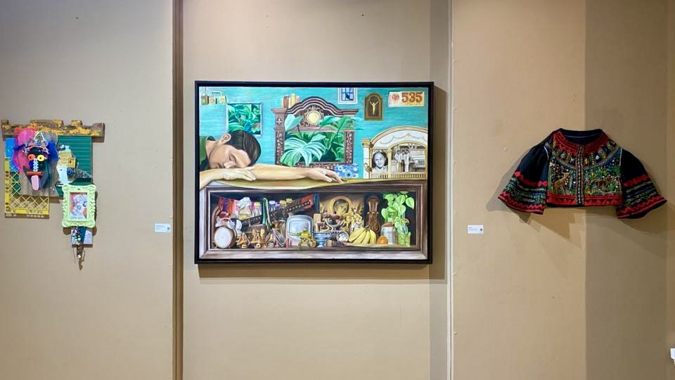 Iglesia showcases a series of churches as artworks (or would the word ‘compositions’ be more apt on this instance?) of Cristhom Setubal. The exhibit takes us through a historical and cultural runway of heritage places of worship: among others, there are the old Oton church of the Immaculate Conception before it was demolished by an earthquake, the ruddy brick exterior of St. Monica’s church at Pavia, the narrow façade of Tigbauan church dedicated to St. John, the familiar ochre patina of the stones of St. Thomas de Villanova’s fortress-church of Miagao, the Gothic spires of St. Anne’s church of Molo, and of course, Jaro’s cathedral and belfry dedicated to La Candelaria. These structures are depicted on planks of wood and assembled with upcycled mixed materials ranging from computer parts to all kinds of wire, daubed with bright colors, and architecturally detailed to a meticulous extent that what meets the eye would be sharp replications of exteriors done in miniature.